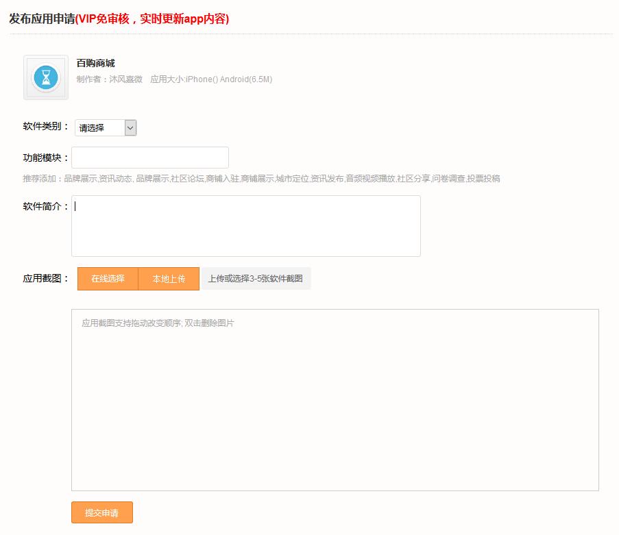 如果覺得都OK了的話我們再發布APP,點擊消息推送,如上圖軟件下面有消息推送、下載統計、用戶統計選項的。我們點擊消息推送,然后填寫下軟件類別,軟件介紹和上傳個APP圖,后點擊提交申請,如果審核通過的話,那么我們就可以在手機軟件商店里面搜索到自己的APP來下載了。