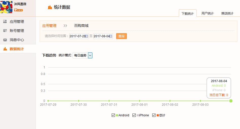 我們還可以從后臺看到有多少人下載了自己制作的APP軟件,從下載統計里面可以查看。